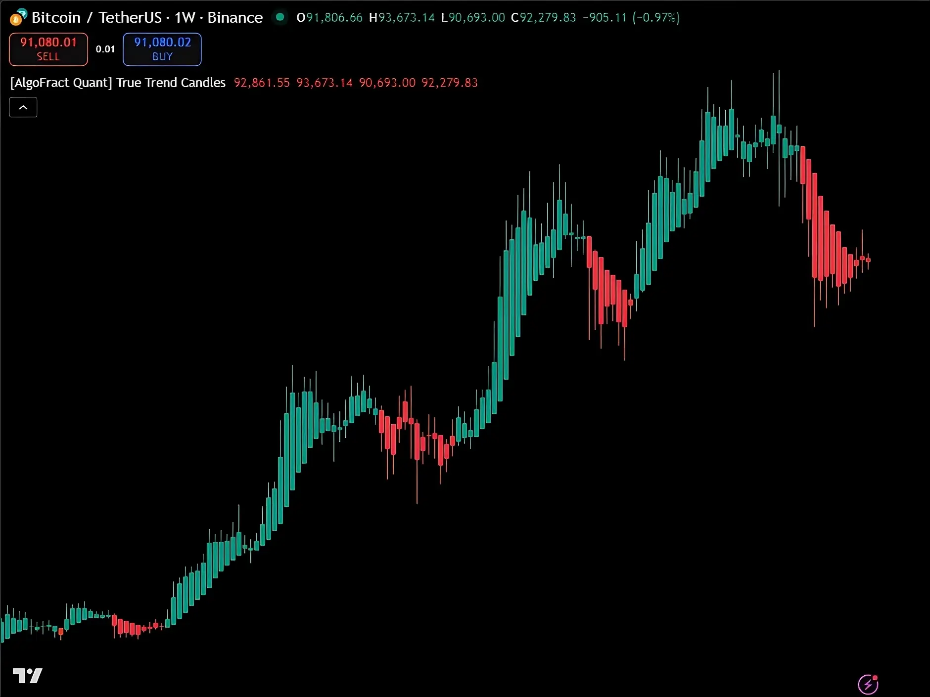 Yes. Our indicators work on any asset TradingView supports — Crypto, ForEx, Stocks, Futures, Commodities. They're designed to perform across all timeframes, from 1-second scalping to yearly chart HODLing.
